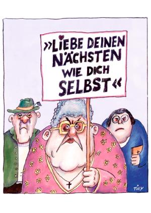 Postkartenmotive u.a. von Janosch, Jacques Tilly, Wolfram